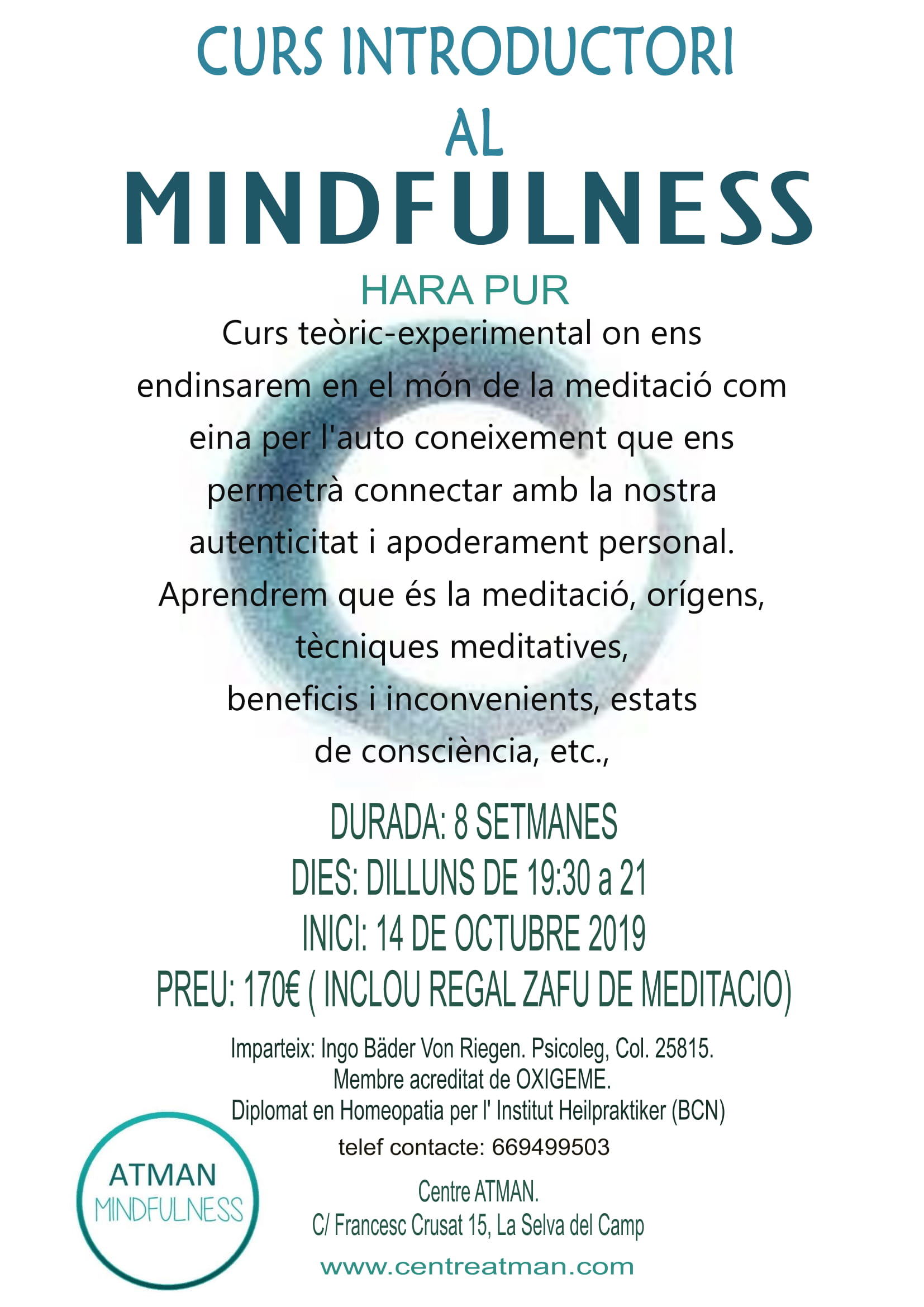 Preu: 170€ (inclou regal zafu de meditacio)